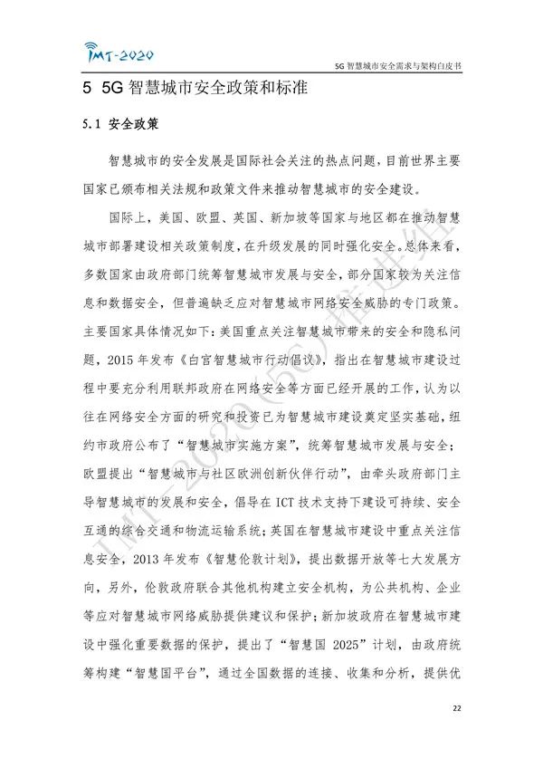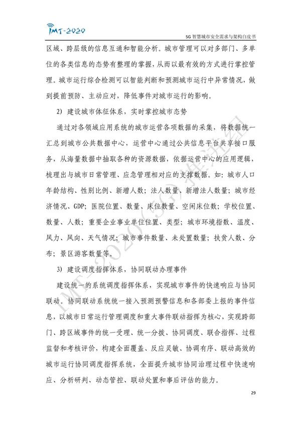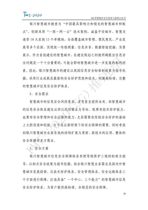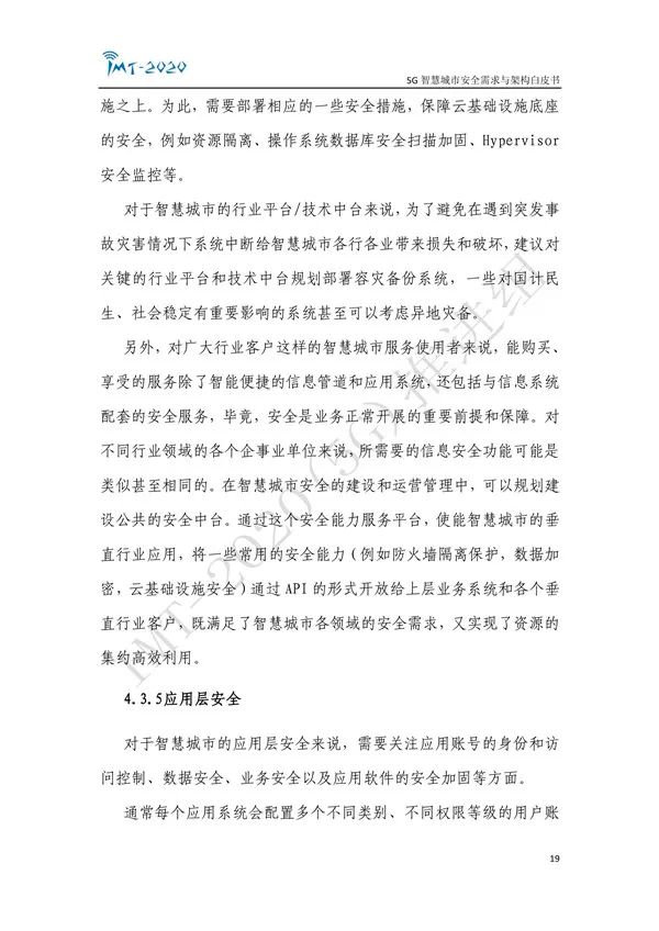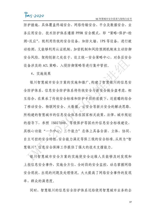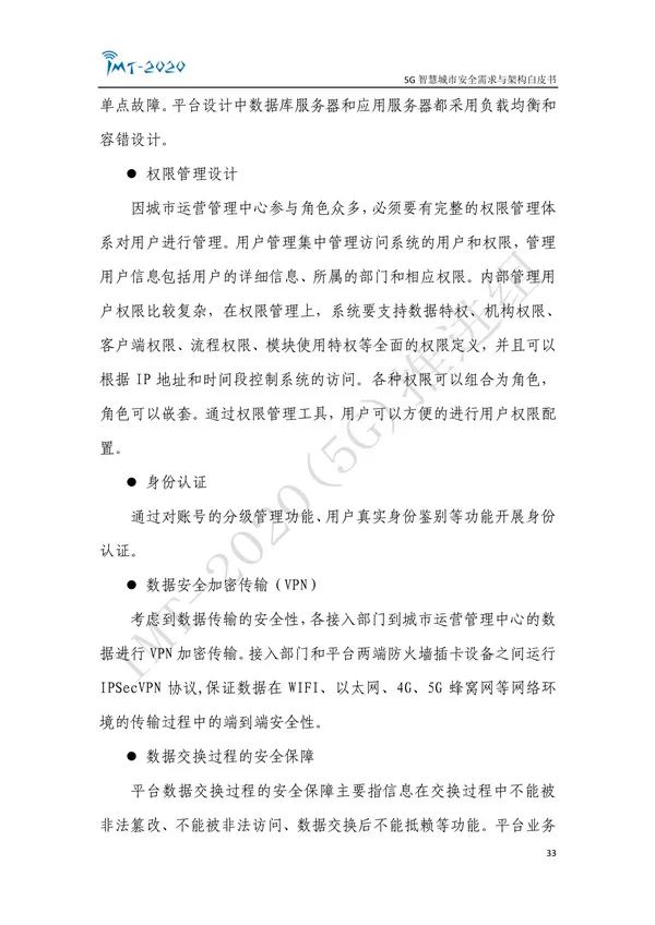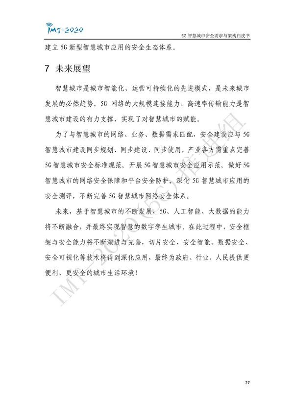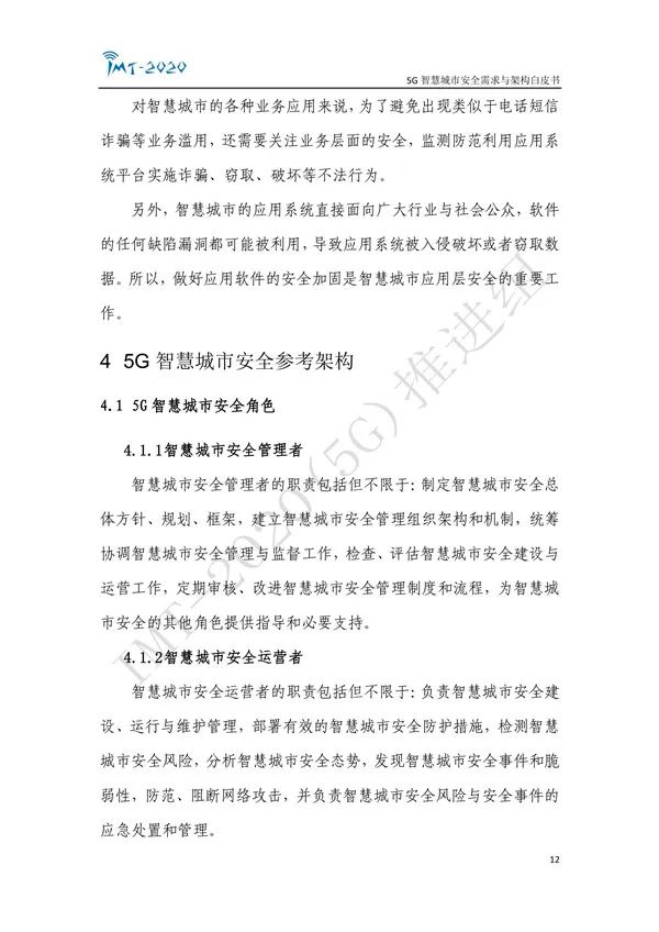 白皮书指出,5G技术的应用给智慧城市发展注入新动能的同时,也会带来新的安全风险。针对5G智慧城市的安全需求,白皮书提出了5G智慧城市安全参考架构,架构中涵盖终端层、边缘计算层、网络层、行业平台/技术中台层、应用层、安全运营管理层,并针对每层给出了安全实施建议,建议城市的管理者和建设者在每一层部署相应的安全能力,以确保5G智慧城市各项业务安全运行。