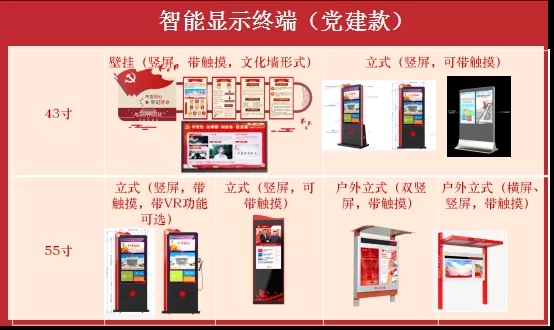 党建展示机是党建窗口展示服务智能终端,设备提供最新党建要闻、党建政策解读、党建专题报道等视频、图文资讯,并可定点展示企业内部党建工作动态、先进个人等资讯,有效提升党建学习效果、展示企业党建成果。